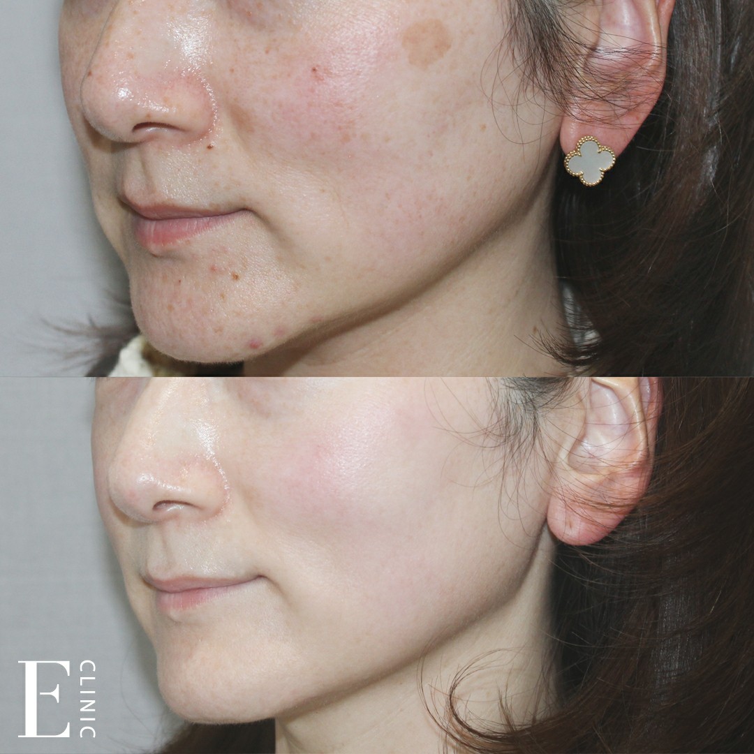本人が普通のシミだと思って自分なりに一生懸命にケアしていたものが、実はもっと深い真皮性のもので、通常の表皮性のシミのようなケアでは効かないというパターンもよくあります。