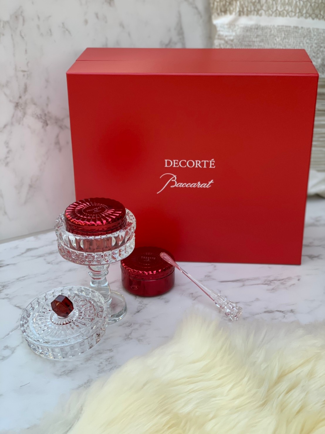 なんと!バカラのクリスタルガラス製スタンドの中に、コスメデコルテの最高峰スキンケアライン「AQ ミリオリティ」のフェイスクリーム「インテンシブ クリーム n」が入っているというとっても贅沢なアイテム✨